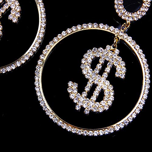 Hoop US Dollar Sign Cubic Zirconia Earrings Dangle Silver Gold Fashion Jewelry