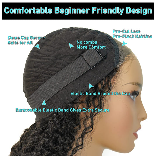 MENTOR Glueless Wigs Human Hair Deep Wave Wear and Go Wig for Beginner Pre Plucked Pre Cut Lace Front Wigs 6x4 HD Ready to Wear Lace Closure Wig 200% Density 22 inch
